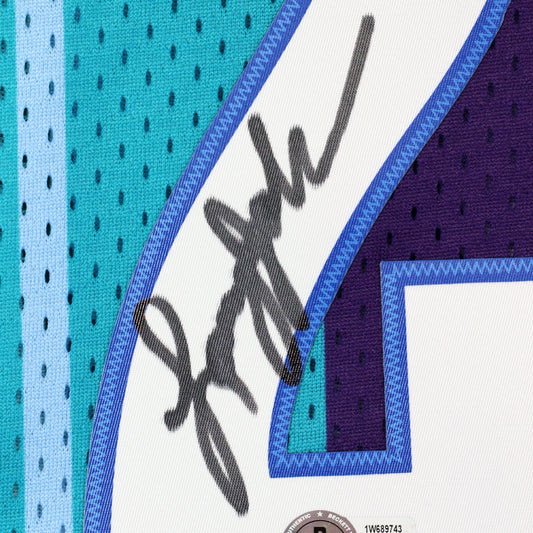 Larry Johnson Signed Hornets Mitchell & Ness Replica Jersey